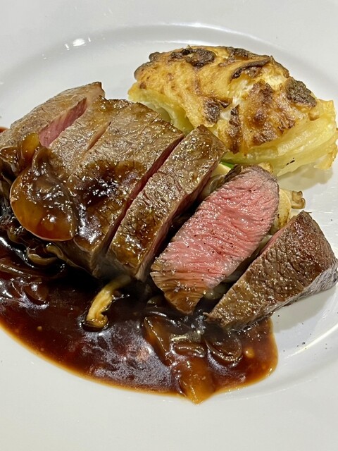 4/22火曜日の晩酌は #昭和町 #ビストロティアボ #北海道 #サロマ和牛 #シンタマ #赤身ステーキ 150g 3200円とっても柔らかくて旨味たっぷりソースも付け合わせも秀逸#ニース風サラダ 1000円#フランスワイン #シャトーモンペラブラン #カリフォルニアワイン #グラディエーター デザートは #紅茶チーズケーキ と #カスタードプリン #キャラメルナッツアイスクリーム を盛合せにお連れ様は #チリブランデー #ピスコ #ソーダ割り いつもどの料理も旨い(^-^)。。。#大阪グルメ