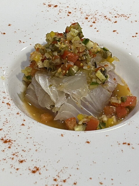 前菜は #カブラのムース #天使のエビ #コンソメジュレ がけ #キャビア のせ