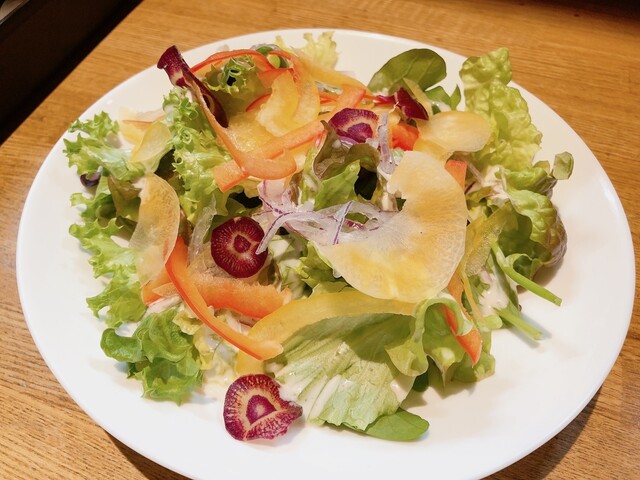 パプリカのスライスやキャベツ、リーフなど、いろんな味と色が美味しい!