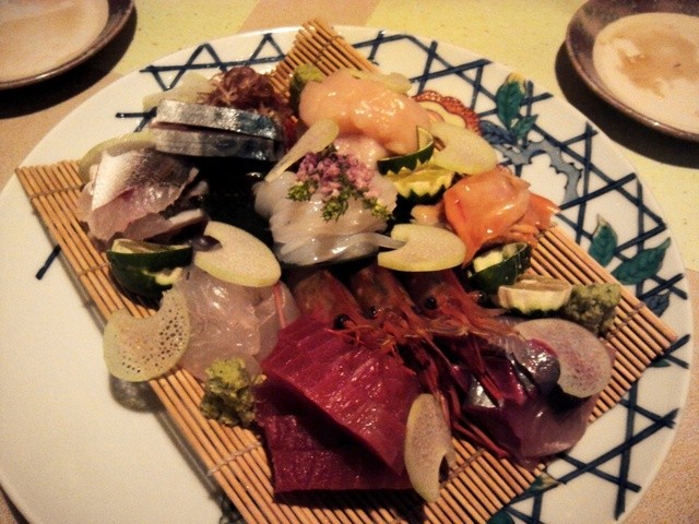 刺身の盛り合わせはどれをたべても新鮮でおいしかったです。