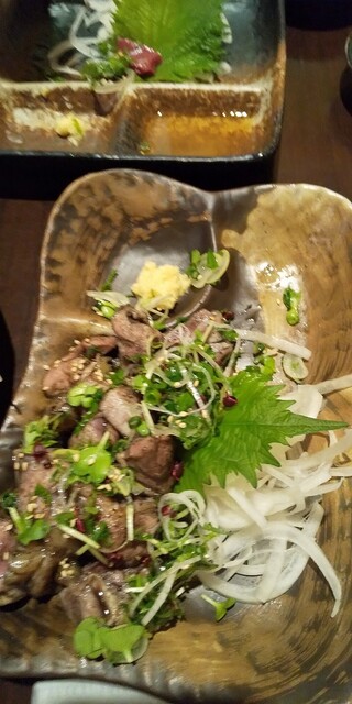 まずは肝刺し、全然臭みなくトロっとしていて濃厚口の中で溶ける感じでおいしいー