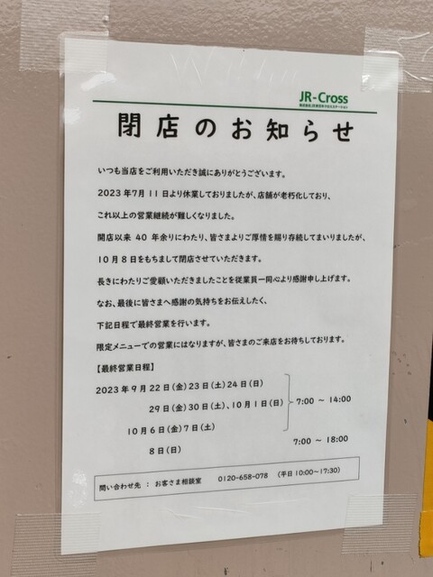以前から休業していたこのお店が10/8(そばの日)をもって閉店すると知ったのは、X(旧Twitter)の9/11のこの投稿でした。