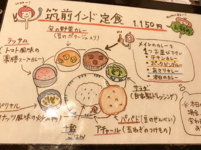 メニューは筑前インド定食がメインのようです。