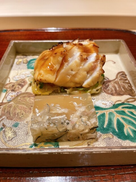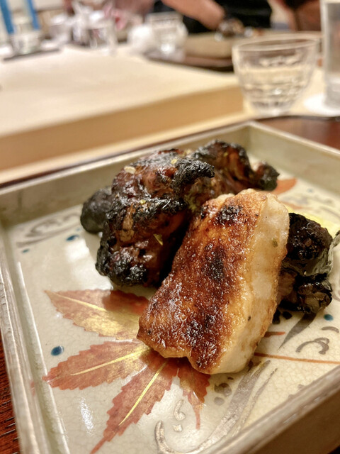 ◉鼈 炭火焼き 胡椒を練り込んだ生麩添え