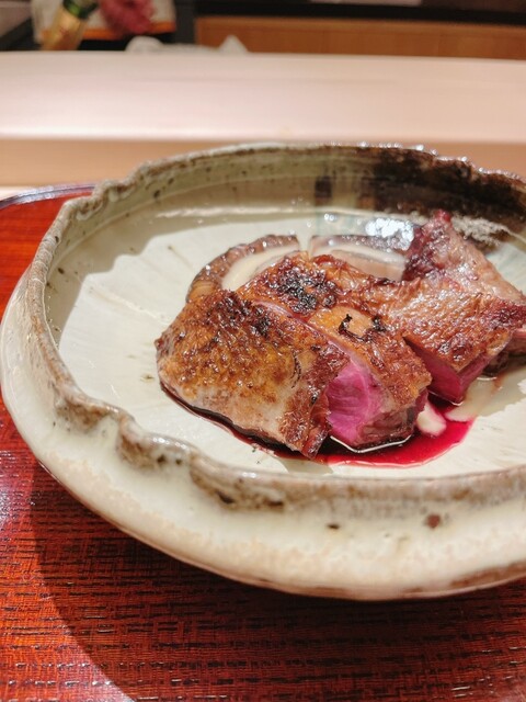 鳩 炭火焼き 椎茸 骨とマッシュルームのソース 醤油味醂黒にんにく