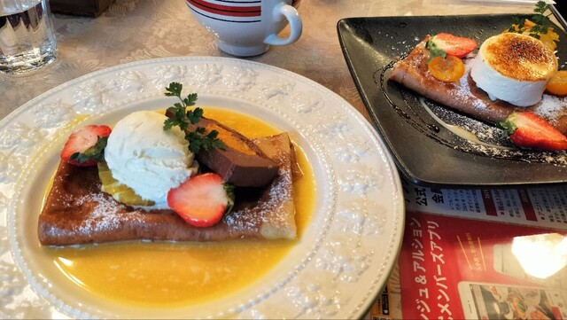 2人ともプラス料金でスペシャルクレープを。先ほどのケーキでかなりお腹はいっぱい、だけど。