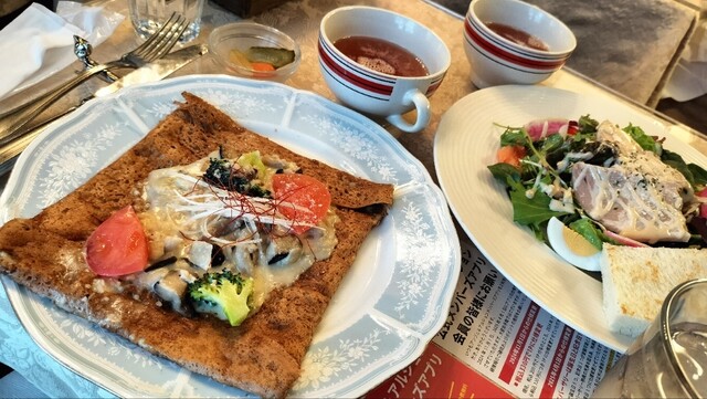私はガレット、マルシェに。メニューと入っていたもの一部違うかも。でも生地がちゃんとしてたからいいか。