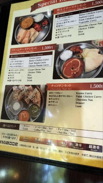ランチメニュー、以前来た時より増えてる?明太子チーズナンってあったっけ?