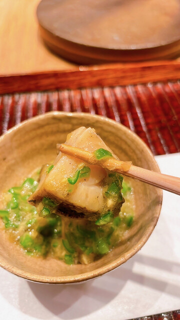 梅雨時に清涼感のある味付け、鮑のわさび和え、ゲソにも黒七味山椒の工夫などなど、感動しました。