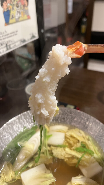 つづいて出てきたカニのお造りはカニしゃぶも兼ねていて、生で食べても良し、しゃぶしゃぶして食べても良し…カニ甲羅焼きのミソに浸して食べても良しでカニ一杯を頂きました。