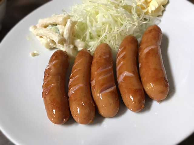 うってかわって、この質素なウインナー炒め。さいこーだな。