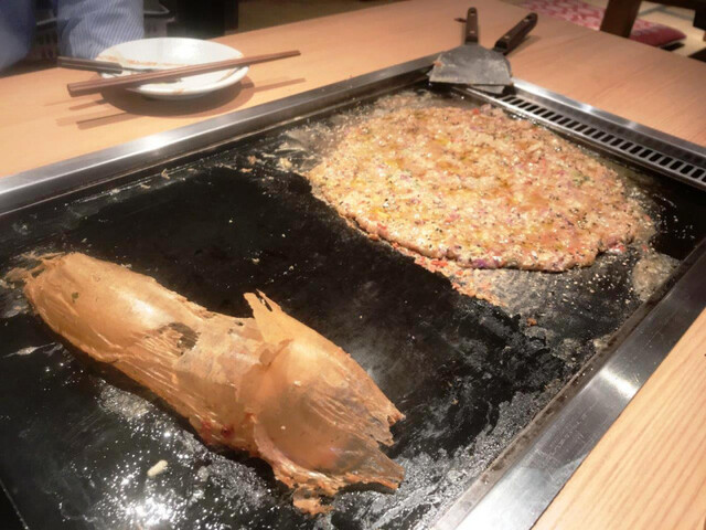 店名の煎餅もんじゃもキレイに出来上がりました。