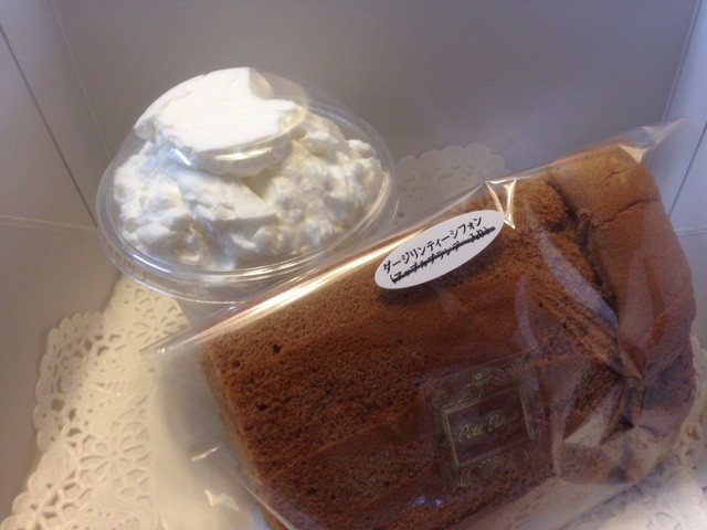 秘密のシフォンと生クリームのお持ち帰りです。