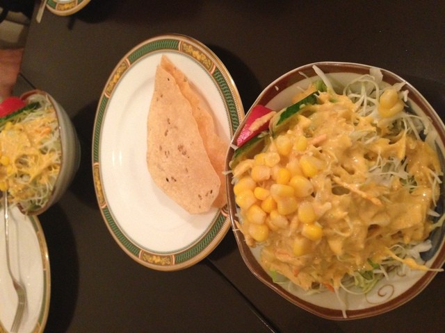 サラダのドレッシングから始まって、ナン!特にチーズナンが美味し(^v^)