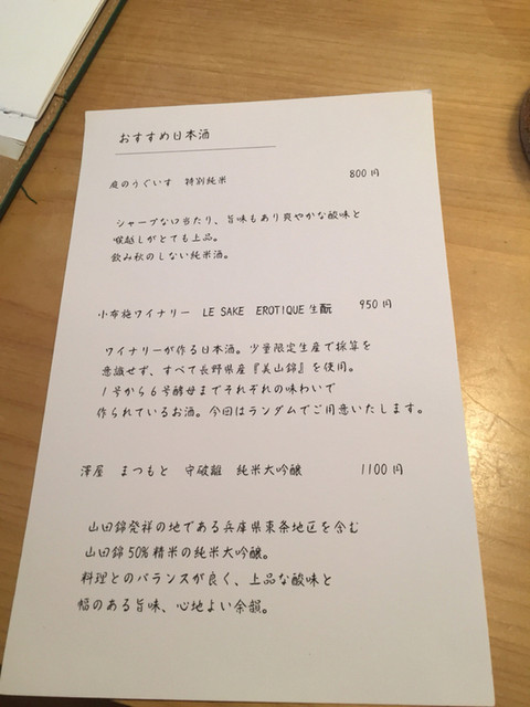 酒は福岡の「庭のウグイス」を選択。ゆるりと時間を過ごし、