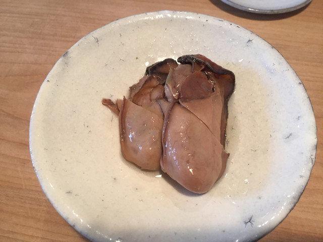 何軒か行く予定ですが、肴にタラコのスモークと牡蠣のオイル漬けを注文。ご主人はフレンチでの修行経験もあるそうです。