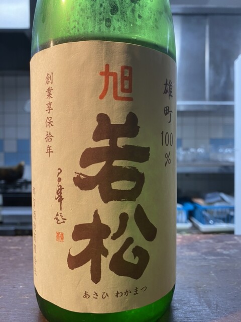 鴨も追加して旭若松を燗酒にしてもらいます。燗酒の熱で口の中で溶ける脂が旨い。