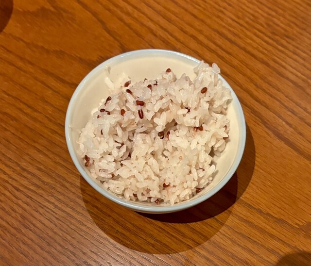 花ニラとピータン 豚挽肉のピリ辛炒め:この店の大人気メニューである花ニラ、豚挽肉の組み合わせにピータンの旨味を加えた料理はクセになる味わい。赤米入りご飯にかけて食べるスタイルだが上品に楽しめる。台湾料理の奥深さを感じる良い料理。料理の最後に良い食事メニューが楽しめるのは嬉しい。