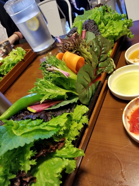 ビックリするボリュームの生野菜で焼き肉をくるんでいただく新大久保のこちらです。