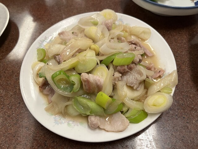 テレビにも出たというネギ肉イタメ、なんという香ばしさ、街中華の中でもピカ一です。