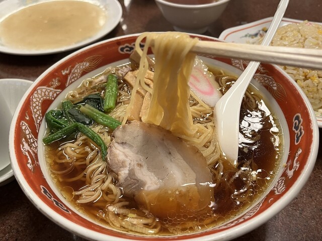 ラーメンも濃口の醤油が効いたスープにかなり軟らかめの極細麺、この取り合わせは最近見ない、子供の頃、夏休みに公営プールの食堂で食べたあの味あの景色が蘇ります。