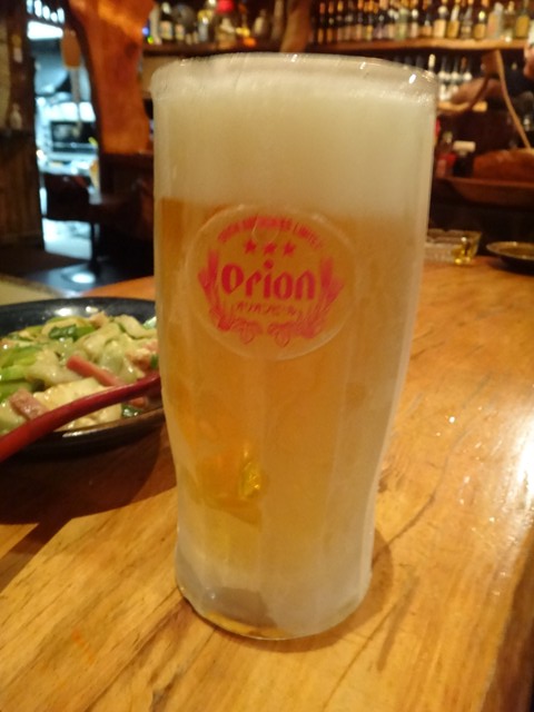 キンキンに冷えたジョッキでオリオンビールをやりながら島らっきょをつまみます。