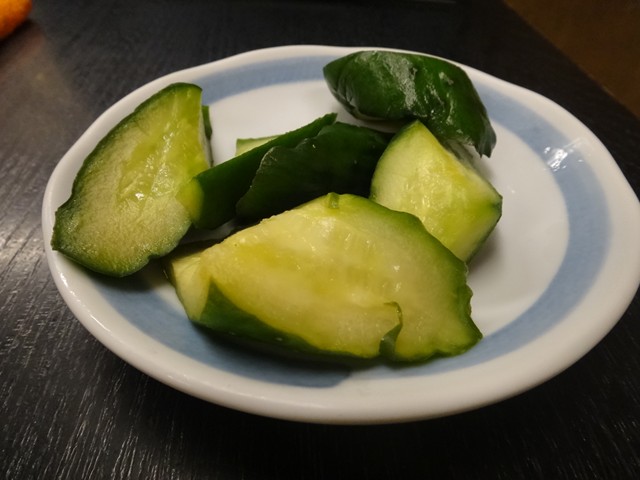 今宵は、普段あまり注文しない鶏わさと塩キュウリ。