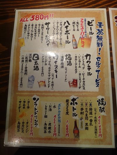 ドリンクもリーズナボーな価格でありんす。