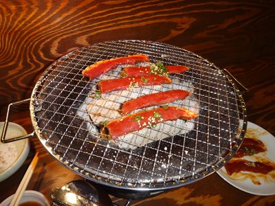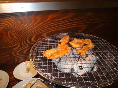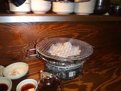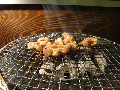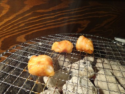 いつものように七輪でいただきます。お肉なのにサクサク!!新鮮!!