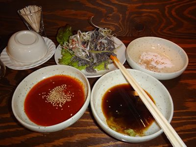 酢味噌、わさび醤油、塩!!3種類もタレを出してくれます!!
