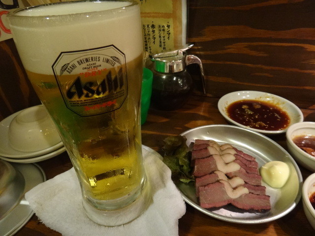 今日は、シビレとハチノスで200円ビール(激安)をグビグビ&お肉をぱくぱく。