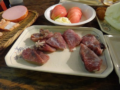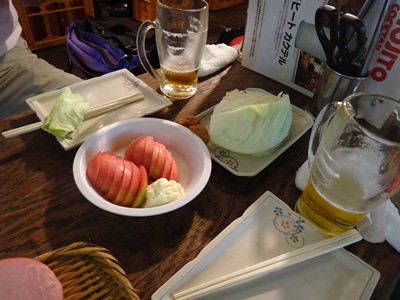こんなに寒いのにまずは良く冷えたビールで乾杯です。