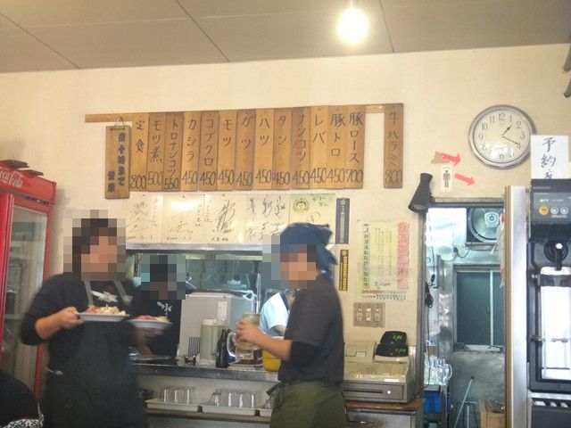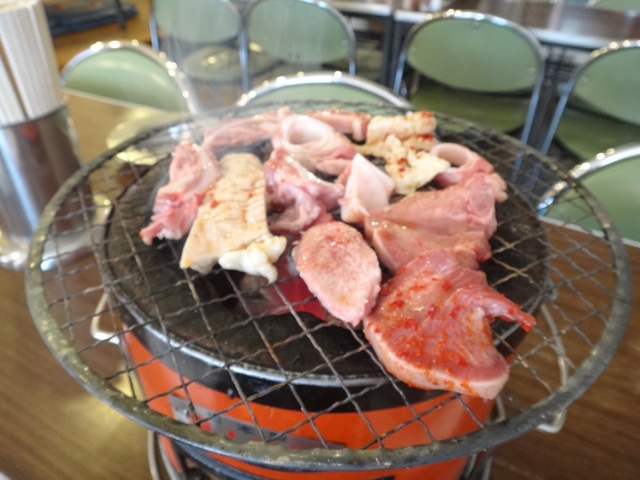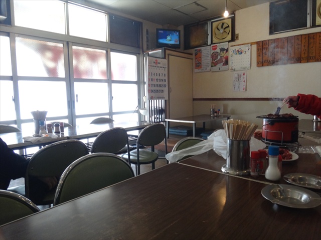 お肉も到着。お腹がグー。いっぺんに乗せすぎで白煙モクモク。すでに満員状態の店内。