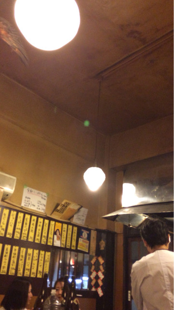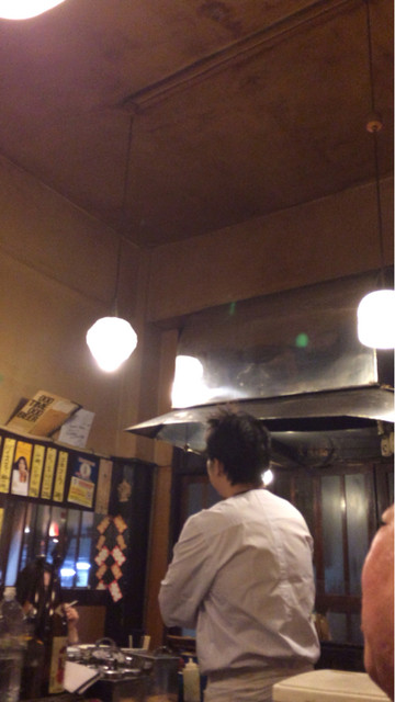 コの字のカウンター。高い天井。お洒落な電灯。赤提灯にパイプ椅子。