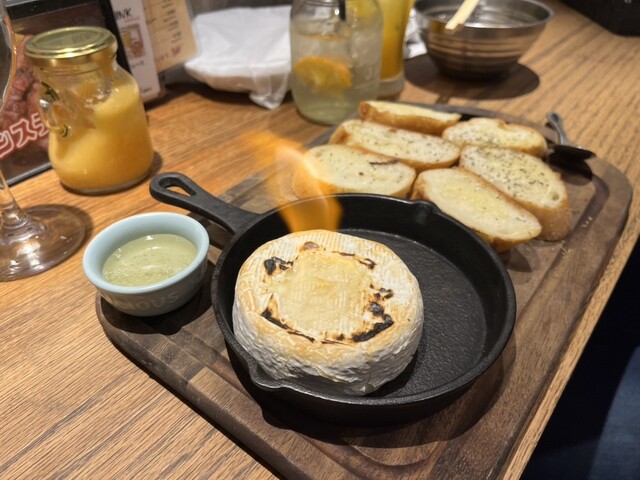 カマンベールを加熱してトロトロにするためにアルコールかけて(だったかな?)火をつけて、これが消えたら食べ時などと、エンタメ要素もあるし、蜂蜜かけてバケットと口に入れたら、もう最高です。