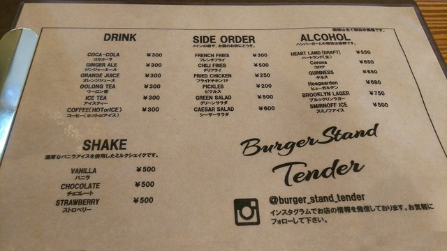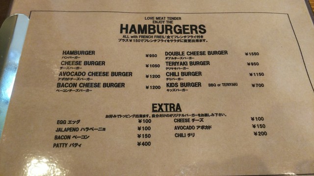 当初のオーダーはアボカドチーズバーガーとピクルスでしたがどちらも品切れ。開店直後の夜でも選択肢が狭まるほどの人気店です。