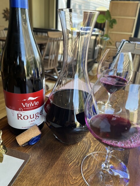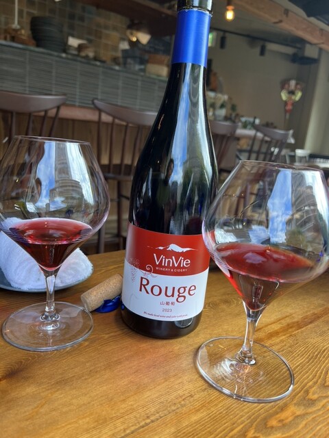 ・ワイン→グラスで赤・「テールドシェル・メルロー」とロゼ「2024年東御ワインフェスタ オリジナルワイン」を2杯づつ、ボトルで「夜明けのAube」ペティアン・シャルドネ、ピノ」をいただいた。無論どれも美味しく上質な料理と良く合った。同じ長野県にこだわって作られた料理とワインが合わない訳が無い。