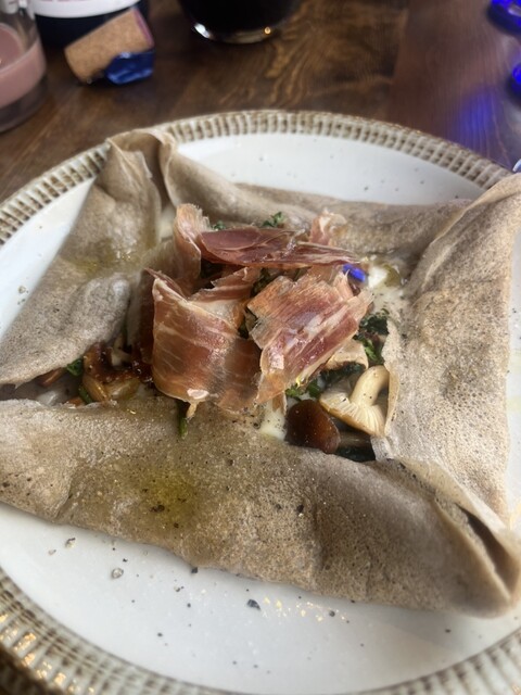 メインは「野沢菜のグラタン」と「そばのガレット生ハムきのこ」をいただいた。やはり美味しい。ガレットは蕎麦の香りが立ち、グラタンは野沢菜とサーモン入りクリームとのマッチングが最高だった。どれも美味しいので一気に食べてしまう。