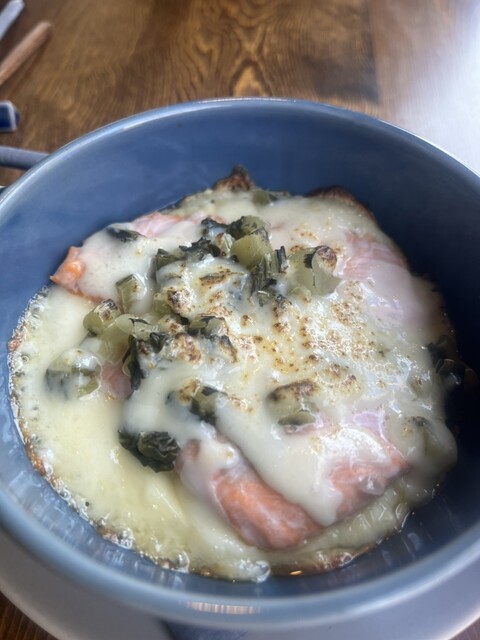 ・野沢菜とサーモンのグラタン→毎回頼んでしまう安定の美味しさ。