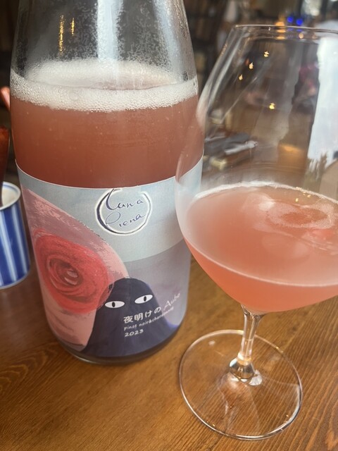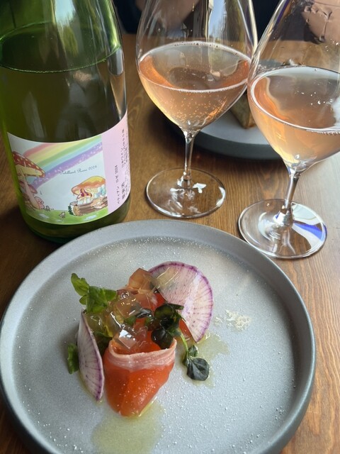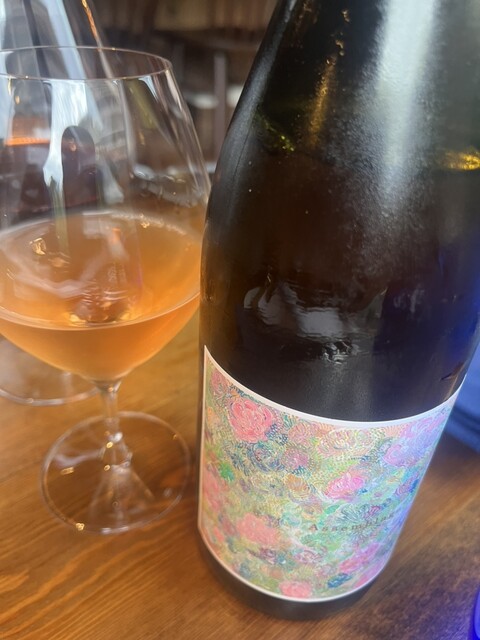 ワインは長野県東御市のドメーヌナカジマのロゼペットナット2024。上品な酸がたっていてこちらの料理と良く合う。自然派ワインとピッタリ合うハイセンスなお料理をいただき気分は上々。中々こうしたお店は見つからない。