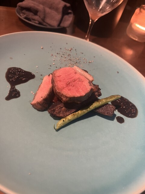 まず前菜が感動もの。野沢菜、ゴボウ、蕎麦の身があったかと思えば、いちごとモッツァレラチーズ(グラスのロゼスパークとの相性抜群で季節を予感)も添えられている。あとキッシュ、肉厚のサーモン、温かい里芋のスープなども盛られ、全てが丁寧に調理・味付けされていてかつ全体としてまとまりを感じた。