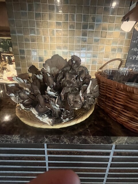 前菜は、信州サーモンのカルパッチョと原木舞茸とラクレットを、メインは黒毛和牛のシチューとグラタンを注文。