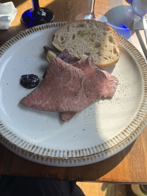 長芋のスープも上品で素材を活かす引き算の調理、秀逸。メインはローストビーフとグラタン。この2つは良く頼む。グラタンはクリーミーで濃すぎない味わいがいい、自家製パンとも良く合う。和牛ローストビーフは丁寧に調理されていて大味の肉料理とは無縁の仕上がり。ぶどうのマスタードの酸と甘味が肉とワインに良く合う。デザートも長野県産にこだわったハイセンスな仕上がり。いちごのタルト(写真忘れ)とそば粉のリンゴキャラメルクレープ。こちらのデザートは間違いない。夏に向けてレモンのシャーベットが楽しみ。