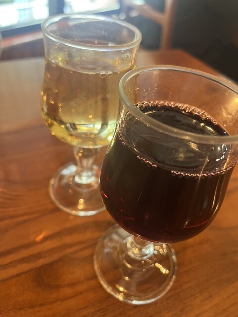 「デキャンタ赤500mlカンパーニャ土着品種アリアニコ 2,480円」→南部なので果実味豊か、風味は独特で良かった。別のデキャンタ赤はサンジョベーゼとのこと。