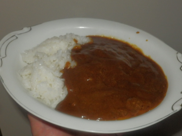 カレー・シチュー皿のご飯盛り、カレーをかけて