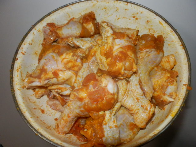 おろしニンニク・唐辛子・フェンネル・クミン・ターメリックでした味をつけ