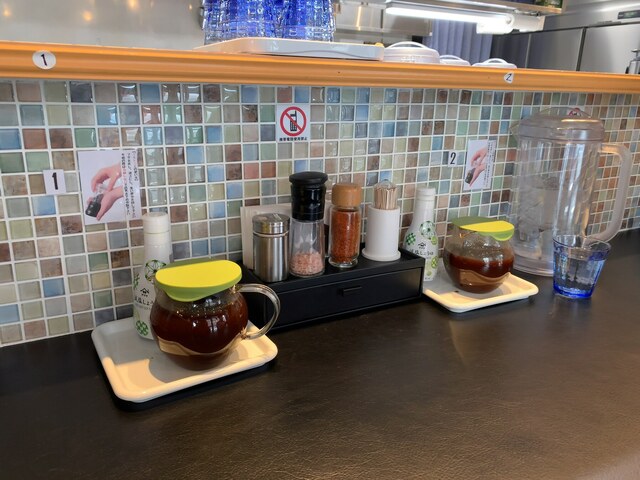 以前の浅草橋のお店もそうでしたが、随所に店主様の拘りが見られる店内、置かれた塩、ソース、カウンターのタイルもまさにという感じです。