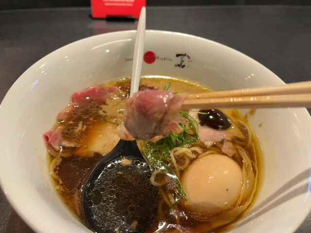 具材ですが、レアチャーシューと薄切りチャーシューのバランス・旨味もハイレベルです。