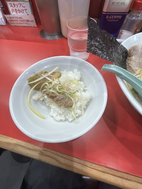 お腹も減ってたからネギチャーシューに普段つけない半ライスも。