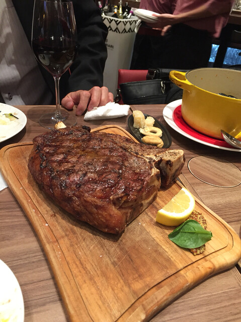 男3人で行って、限定メニューTボーンステーキ、生うにのジュレ、ムール貝、サラダ、パスタ、ピッツァ、ワインフルボトル2本とかんばいにスパークリングワイングラスで3.、これで1人4000円ちょっと。安い、美味い。